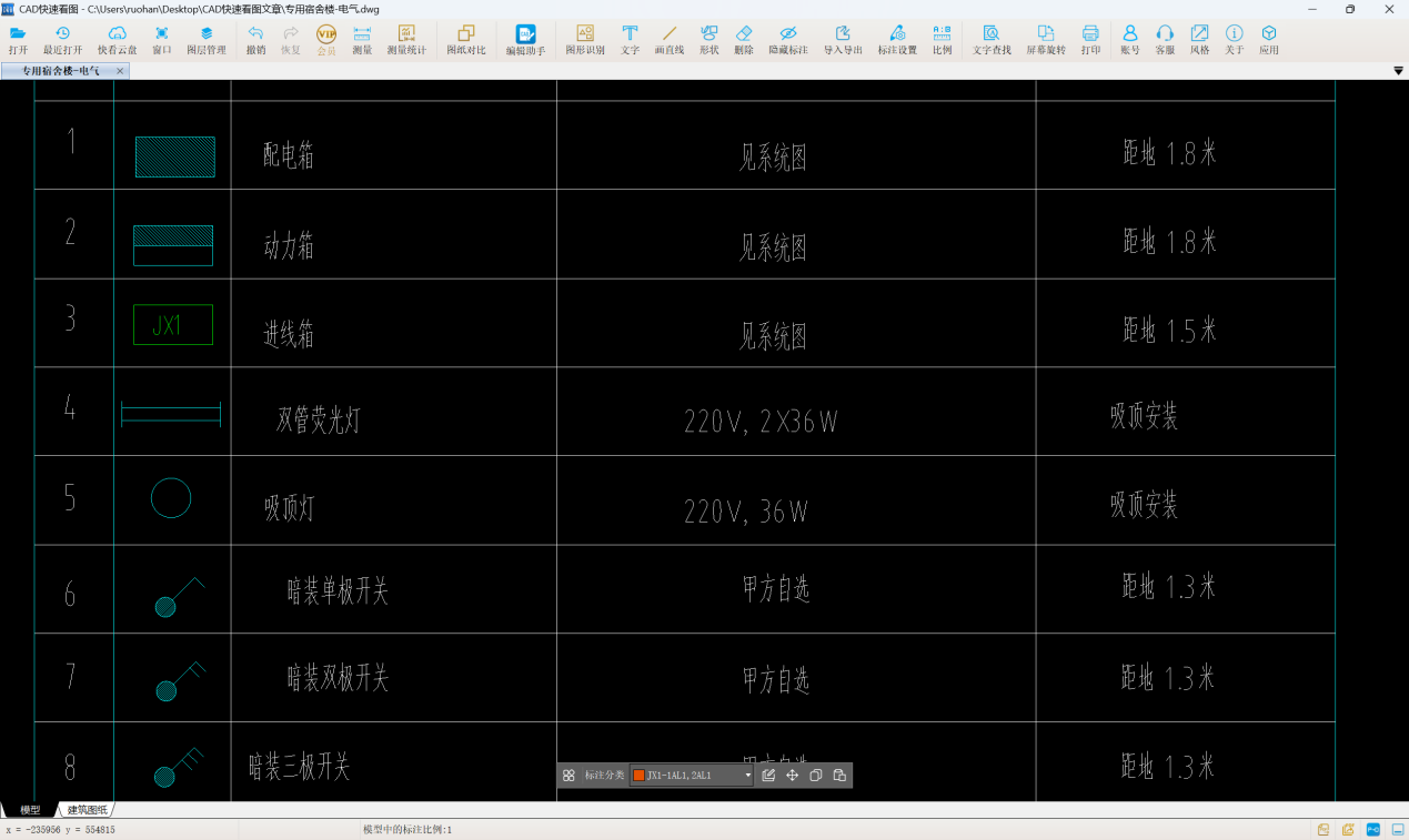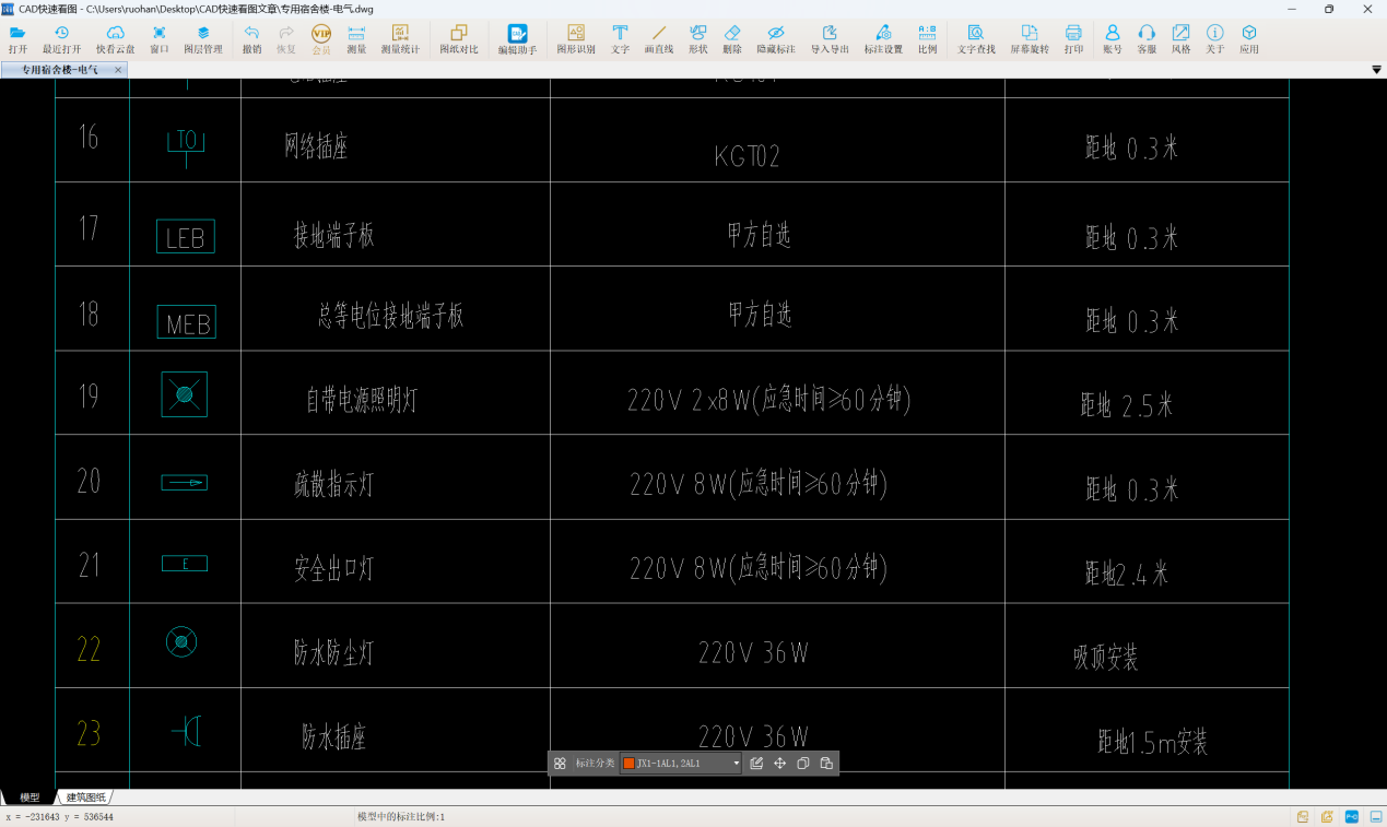 在照明灯具计量计算的时候,CAD快速看图的图形识别可以轻松获取灯具个数,查看已识别图形列表,可以一一对应图纸位置。