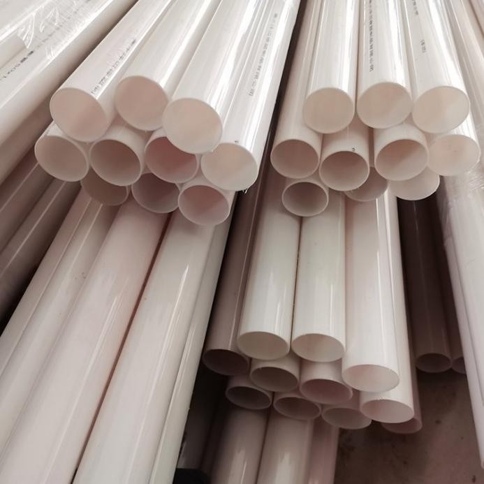3.硬质聚氯乙烯管:由聚氯乙烯树脂加入稳定剂、润滑剂等助剂经捏合、滚压、塑化、切粒、挤出成型加工而成。主要用于电线、电缆的保护管等。管材长度一般4m/根,颜色一般为灰色。管材连接一般为加热承插式连接和塑料热风焊,弯曲必须加热进行。该管耐腐蚀性较好,易变形老化,机械强度比钢管差,适用腐蚀性较大的场所的明、暗配。