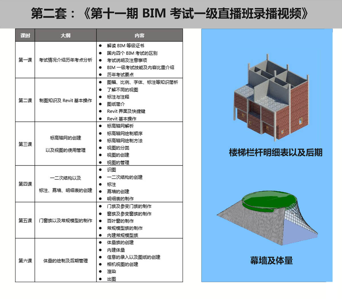 第二套:《第十一期 BIM 技能等级考试一级直播班录播视频》