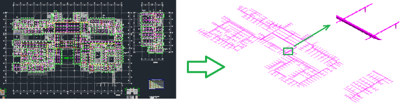 橄榄山风系统翻模和喷淋管道翻模,能够利用现有的DWG图纸快速高效的在Revit中转化成模型。 机电深化工具专门针对设备管线综合而开发,碰撞工具让管综检查和出具报告可以直接在Revit中完成。