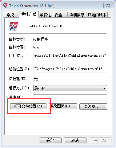 然后把解压出来的文件复制到bin路径下(方法如下,右击桌面上TEKLA图标点属性)见下图