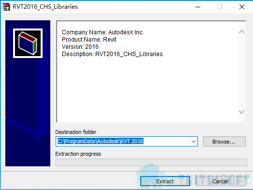 2、双击压缩包进行解压,解压后弹出一个文件路径放置的对话框,在这个对话框当中尽量不要去更改它的文件路径,除非Revit软件安装在其他路径