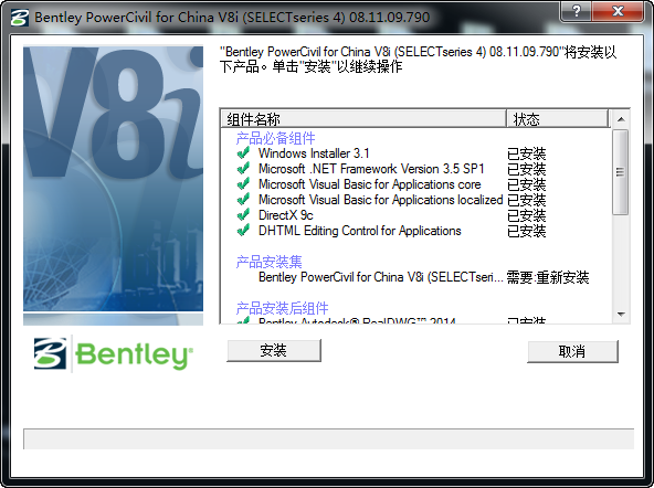 如果从未安装过Bentley相关软件,请先安装预安装包,再安装PowerCivil软件