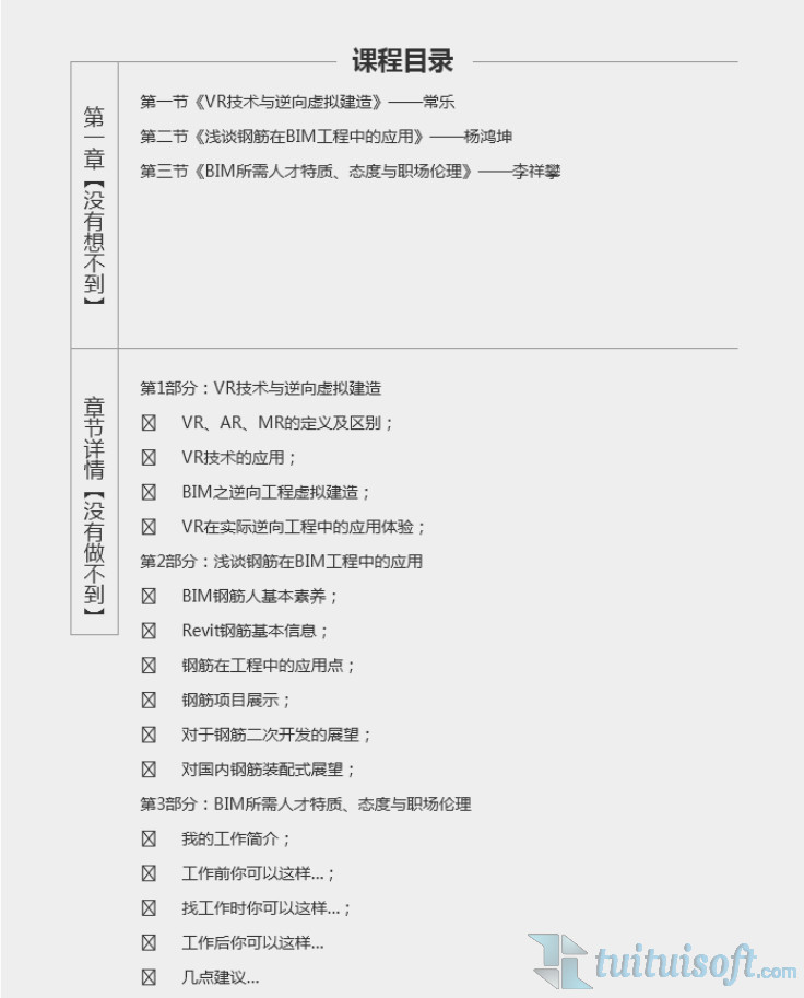 第一节《VR技术与逆向虚拟建造》——常乐第二节《浅谈钢筋在BIM工程中的应用》——杨鸿坤