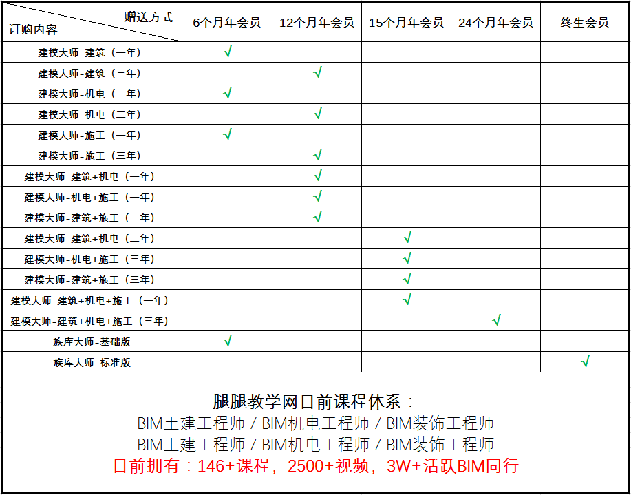 福利三:买就送腿腿网年会员(详情请看下表)