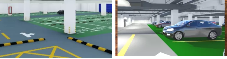 (2)模型点对点应用:针对图纸设计不完善的内容(如监控点位布置、车位规划布置等),利用模型进行应用规划,点对点模拟监控点、车位的使用效果。
