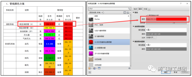 在系统创建中,需要根据《腾飞BIM建模标准》中的管道颜色方案来一一对应。