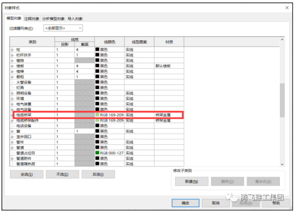 对象样式添加一次就可以在各视图里显示桥架材质,不用重复点击添加。目前添加电缆桥架大多采用这种模式。