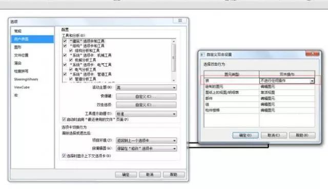 如下图所示,此处的双击选项里,族修改为不进行任何操作,防止不小心双击族文件而进入族编辑窗口。