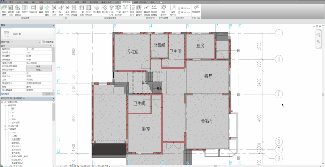 1、切换到楼层平面视图中,在【GLS精装】选项卡中的【面层装修】面板中启动【房间粗装】工具。