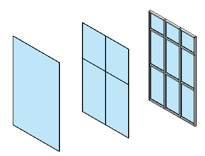 幕墙 1 - 没有网格或竖梃。 没有与此墙类型相关的规则。 此墙类型的灵活性最强。